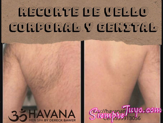 REJUVENECE CON UN BAÑO DE COLAGENO PURO ACTIVADO CON LUZ INFRAROJA VE TU ROSTRO CON LAS LINEAS DE EXPRESION MAS ATENUADAS Y RECUPERA EL BRILLO Y LUMINOSIDAD DE LA PIEL JOVEN CON UN CUTIS LIMPIO E HIDRATADO, MASAJES: RELAJANTES, ANTIESTRESS, SHIATZU (DIGITUPRECION) Y EL DELICIOSO "TANTRICO" A DOS O CUATRO MANOS (PON TU CUERPO EN NUESTRAS MANOS Y SERA UN VERDADERO PLACER ATENDERTE COMO TU TE MERECES) , MUSICOTERAPIA , AROMATERAPIA Y REYKI PARA UNA ATMOSFERA MAS CALIDA INTIMA Y RELAJADA ! CONTAMOS CON SERVICIO DE PODOLOGIA COMPLETO REFLEXOLOGIA , RECORTE DE UÑAS , LIMPIEZA PROFUNDA CON DEODORISANTE Y PULIDO DE UÑAS , MASAJE CON COBERTURA DE CITRICOS PARA UNOS PIES IMPECABLES !!! MASAJE DEPORTIVO CON MANTA DE CALOR PARA LA PENETRACION DEL GEL DESCONTRACTURANTE !!! SERVICIOS DE PRIMER NIVEL A PRECIOS REALMENTE ACCESIBLES. CONTAMOS CON APARATOLOGIA Y PRODUCTOS DE LA MAS ALTA GAMA Y DE ULTIMA GENERACION PARA LA PIEL Y EL CUERPO DEL HOMBRE DE HOY LLENANDO TODAS TUS ESPECTATIVAS Y NECESIDADES !!! ***HAVANA-MEN & SPA BY "DERECK BAWER" *** CITAS AL CEL. Y WHATSSAPP : 55-59-91-30-56 . ACEPTAMOS TARJETAS DE CREDITO Y DEBITO. VISITA *** havana-men-spa.com ***